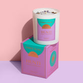 Meet Wyatt - Our Candle of Strength. Infused with Sodalite crystals, this candle is the ultimate confidence booster in our collection! It's the perfect choice for anyone looking to balance their energy, cleanse their aura, and release any blockages. When you light Wyatt, it's like you have a personal cheerleader rooting for you to make choices based on your gut feelings, not your emotions.